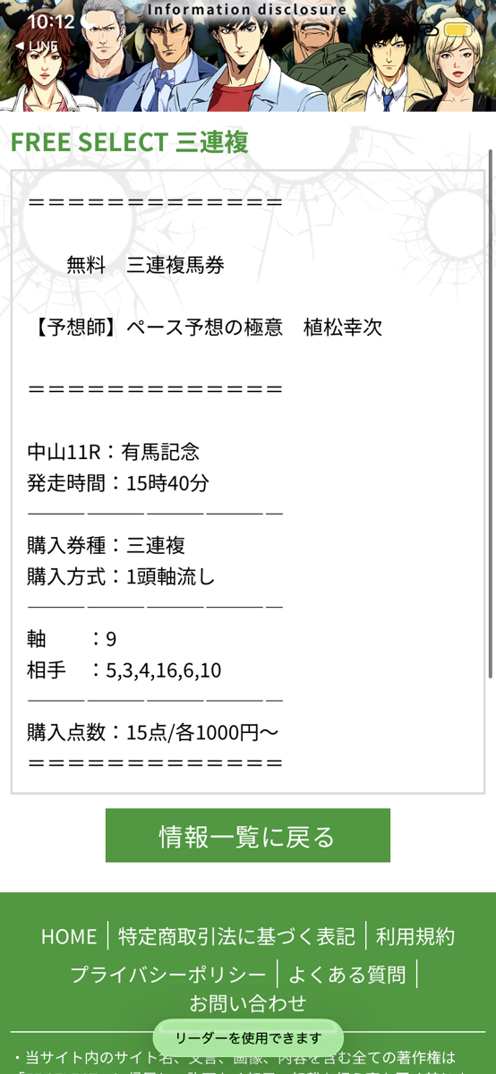 暮れの大一番、有馬記念の無料予想は嬉しいかったです。