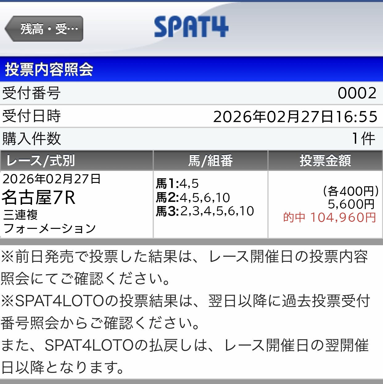 週末リポートの管理人さんにオススメされて使ってみたけど、6千円じゃくで10万越え払い戻しはパンチ力ありますね~ 馬券師が多くて重賞、平場、地方競馬と自分が獲りたいレース取れそうですね~