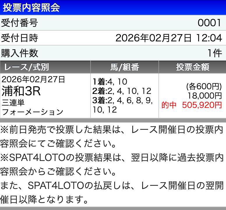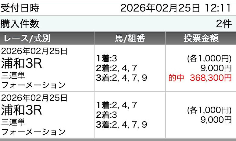 週末的中報告できませんでしたがようやく、本当にありがとうございました。 生活費無くて切羽詰まって地方競馬やりましたけど一撃50万で生き延びる事ができました。