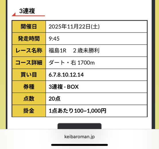 ここんとこ調子良さそうな競馬予想だったから使って良かったです、前回も10万越えだったような?!