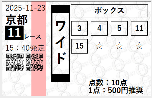 ラジオNIKKEI杯京都2歳ステークス 9人気+10人気+3人気の順をドンピシャ的中、無料でいいのかこの予想? 俺なら有料情報で売るレベルの的中精度! ワイドだけでも7万550円払戻し! 3連単当たった気分!!